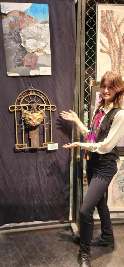 One of my favorite parts of this project was creating a custom belt buckle in the form of a cat’s face. I wanted a unique, eye-catching detail that would enhance the overall look of the costume. After molding and shaping the Model Magic, I painted and decorated the buckle with vibrant colors. The result was a distinctive and memorable accessory that added a playful touch to the outfit and tied the entire look together.